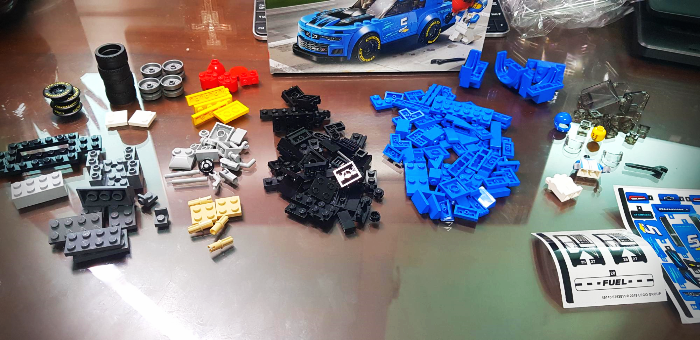 브릭을 색상 별로 분류해놓고, 조립을 시작해봅니다.
